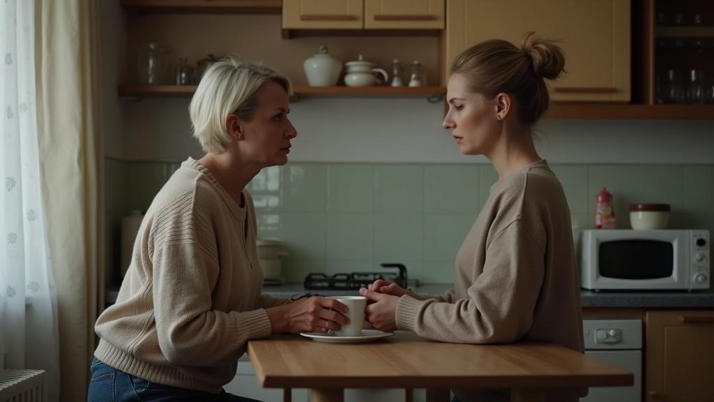 Владислава медленно опустила чашку на блюдце. Звонкий звук фарфора неожиданно громко разнёсся по кухне. Она подняла глаза – взгляд был спокойным, почти ледяным.