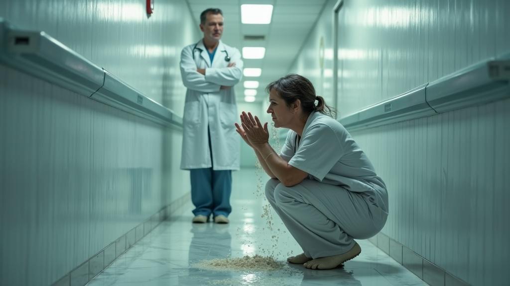 Ведро с грохотом ударилось о кафель, будто в коридоре частной клиники обрушили не пластиковую ёмкость, а чьё-то достоинство.