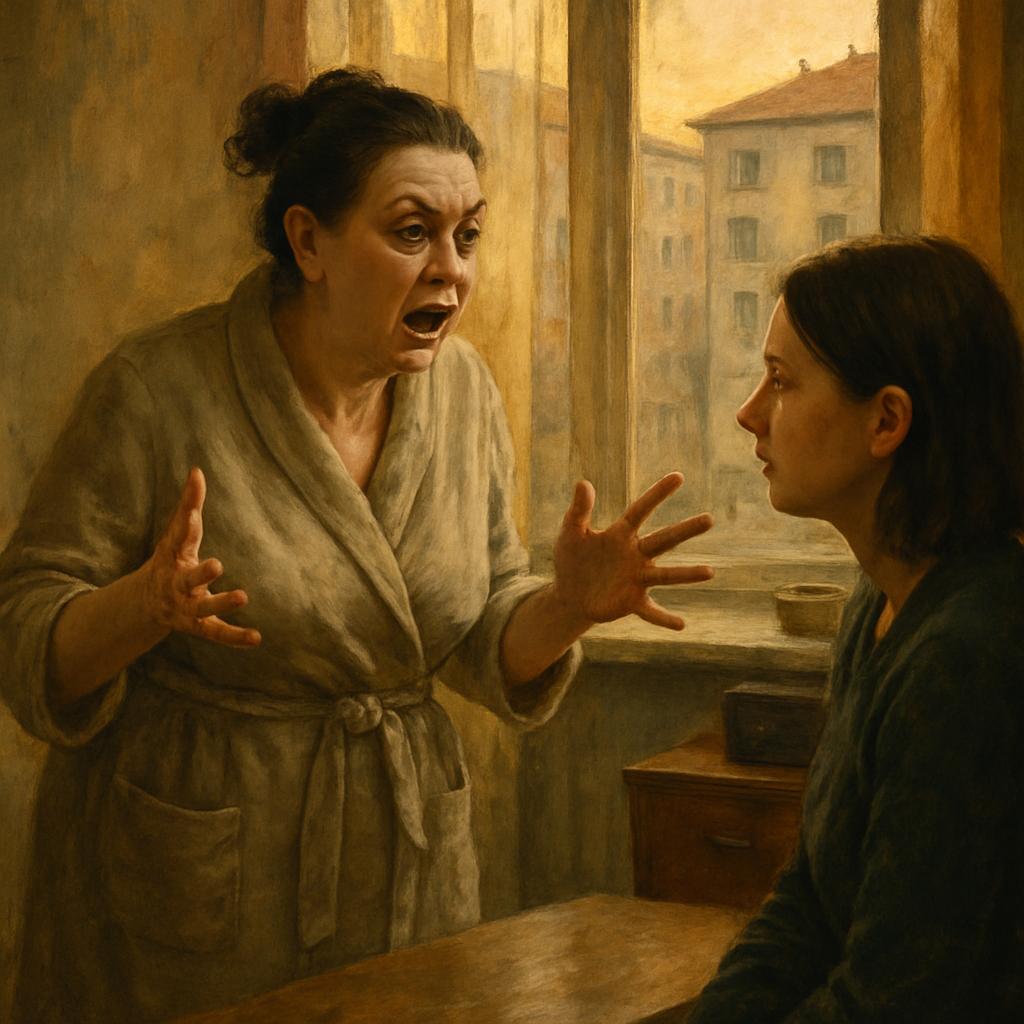 Соседка, прищурившись и ехидно сверкая глазами, потуже затянула пояс на халате, скрывая рыхлый живот. Видно было: сплетни — её стихия. Словно получив новый заряд энергии, она продолжила с особым усердием — с тем самым тоном, каким говорят люди, уверенные в своём праве знать всё о всех.