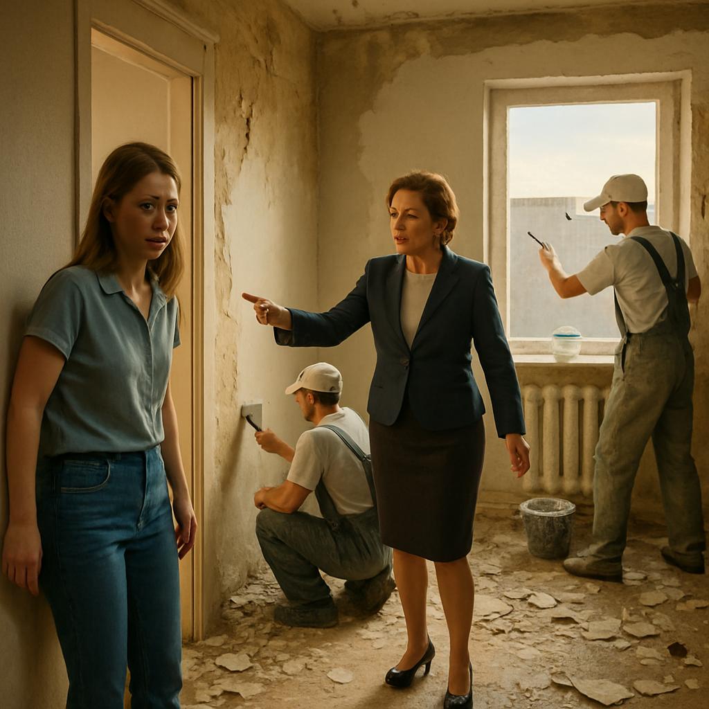 Свекровь стояла посреди комнаты, усыпанной клочьями обоев. В одной руке — шпатель, за спиной — двое мастеров с ведрами штукатурки.