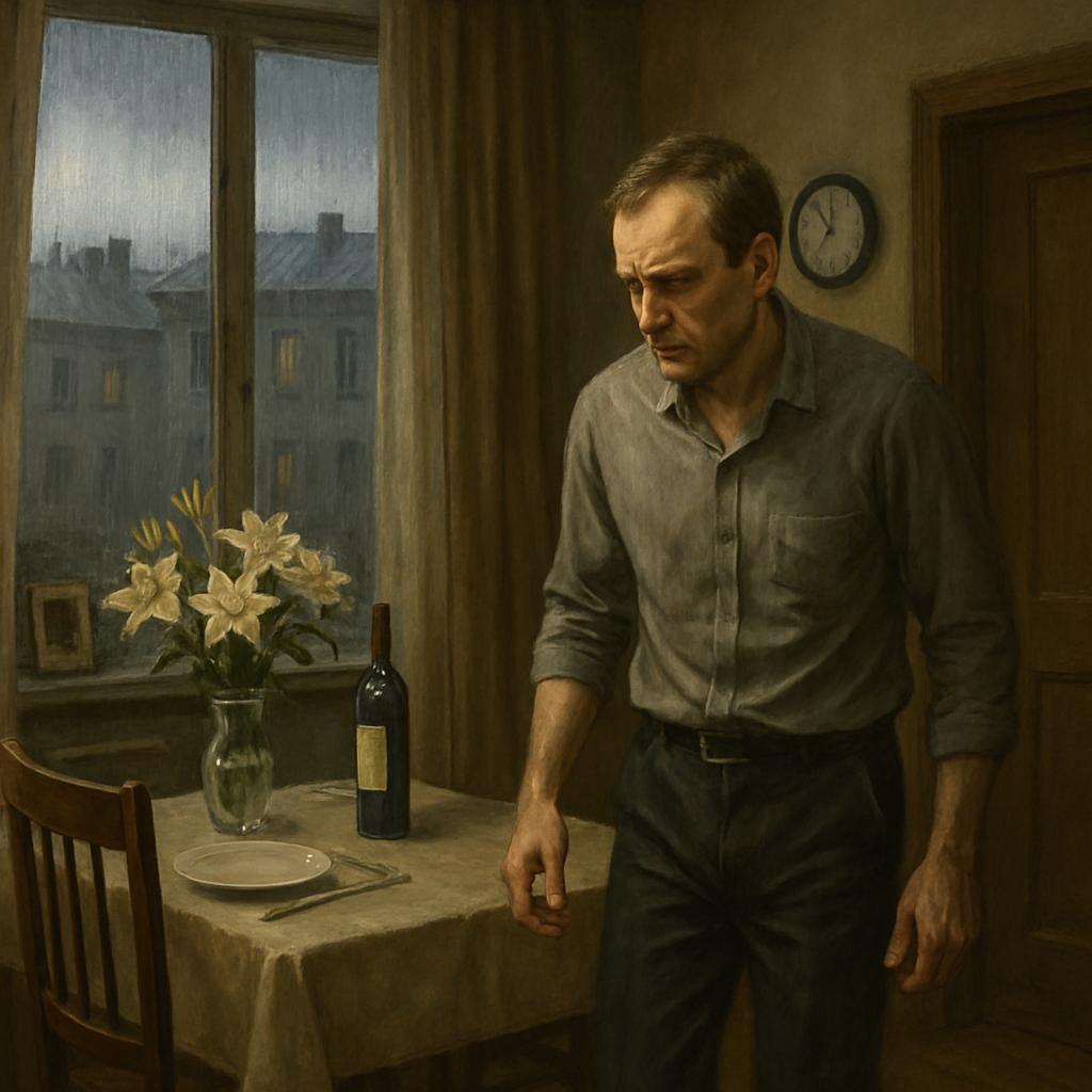 Однажды вечером она вновь позвонила и сообщила, что задержится. Дмитрий почувствовал, как терпение иссякает. Было уже половина девятого вечера — хотя она обещала прийти к семи. Он взглянул на сервированный стол: сегодня они собирались отпраздновать его успех — Дмитрий наконец получил повышение по службе. В центре стола стоял букет её любимых белых лилий и бутылка вина, которую они берегли для особого случая. Где-то внутри зародилось гнетущее чувство холода.