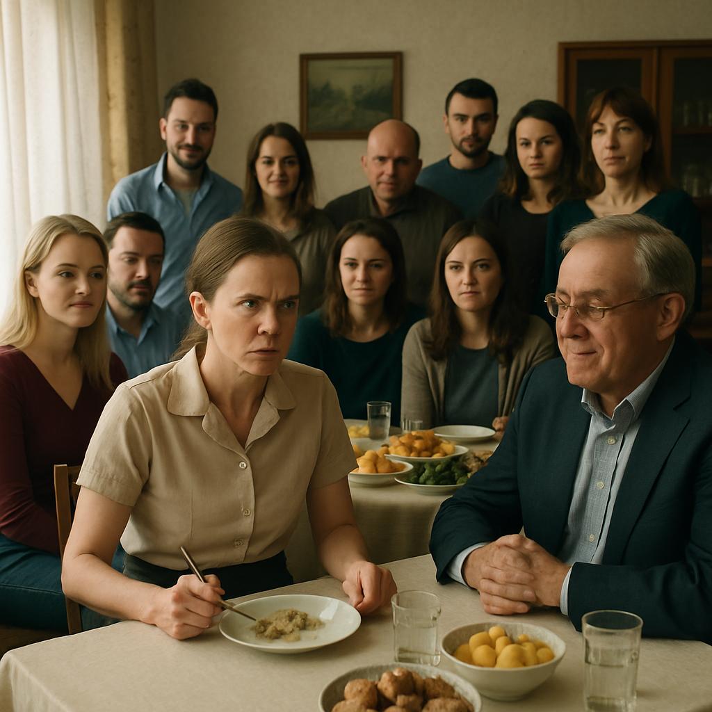 Он рассмеялся громко и самодовольно, будто выдал шутку века. Некоторые за столом неловко подхватили смех — скорее из вежливости или растерянности.