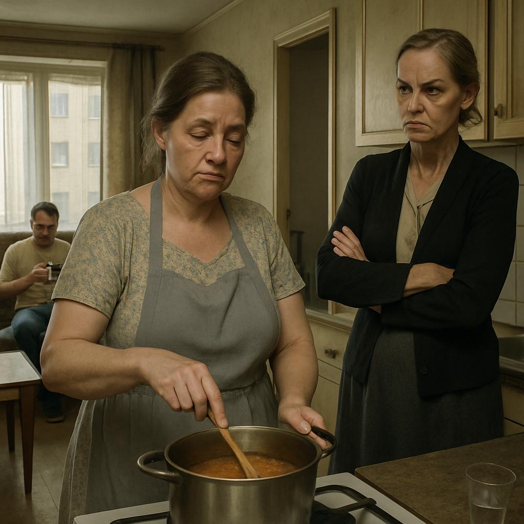 Я молча кивнула и продолжила помешивать гуляш. Всё как всегда: я у плиты, Лариса осматривает квартиру с видом инспектора санитарной службы, а Александр — её обожаемый сынок — сидит на диване с телефоном в руках и будто бы ничего не замечает.