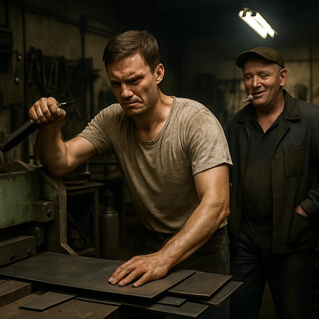 Тарас крепко сжал челюсти и молча усилил нажим на рычаг гильотины; металл хрустнул так резко, словно ломалась кость.