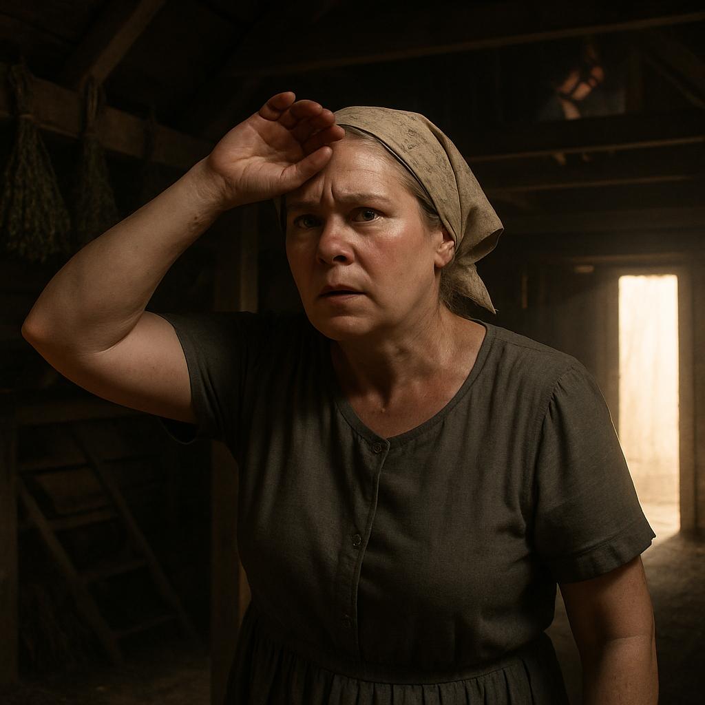 Женщина решительно шагнула в прохладу полутемного помещения, щурясь после ослепительного солнца. Внутри стоял особый запах: смесь сухих трав, старого дерева и вековой пыли. Ганна остановилась, прислушиваясь к звукам сверху — там находился просторный настил для хранения сена.