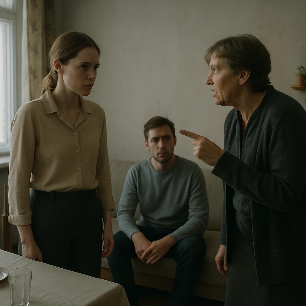 Ульяна резко подняла голову. На щеках проступил румянец — она явно не рассчитывала, что ее услышат. Иван сидел на диване, переводя взгляд с матери на жену. Его лицо выражало замешательство.