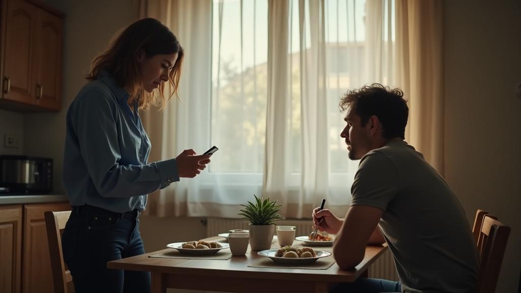 Марьяна влетела в квартиру, не удосужившись снять обувь. В руке горел экран телефона с уведомлением из банка. Она направилась на кухню, где муж спокойно ел пельмени за столом.