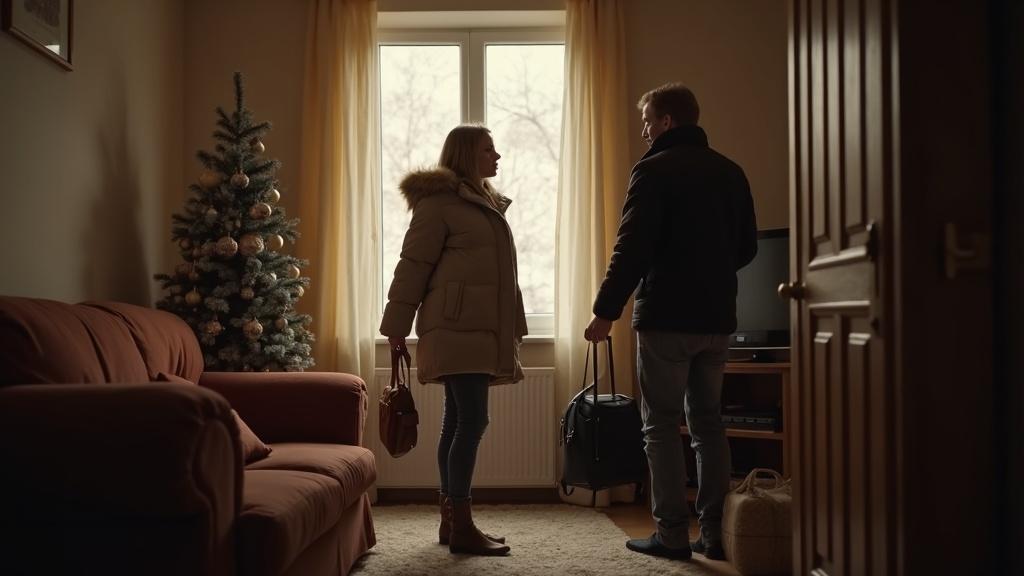В квартире пахло елью. На подоконнике стояла крошечная ёлочка в горшке — украшенная всего тремя шарами и одной мандаринкой на нитке. Кто-то явно позаботился о праздничном настроении.