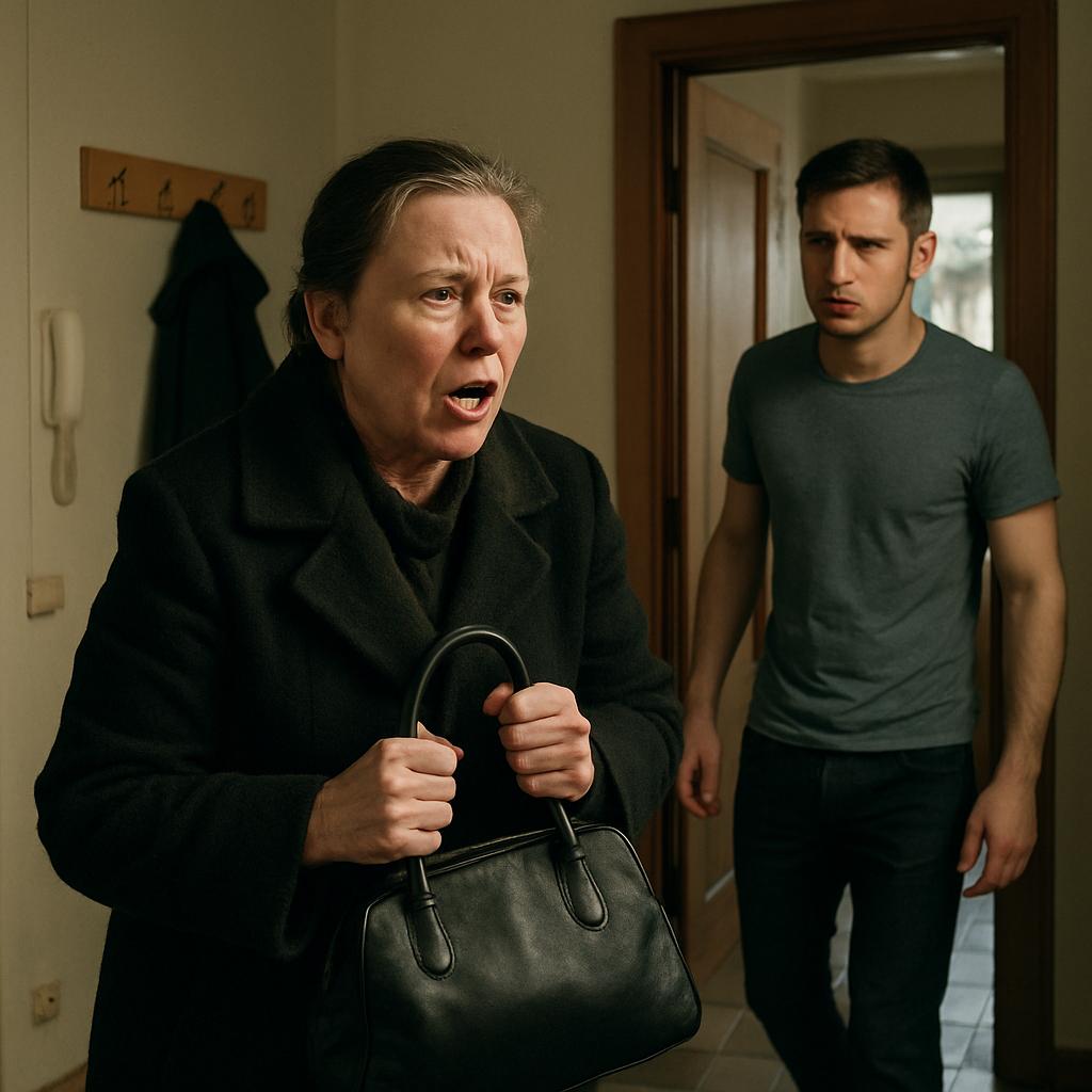 Оксана вытерла руки полотенцем и вышла из кухни. Свекровь по‑прежнему стояла в пальто, с сумкой, крепко зажатой в руках, и смотрела на сына так, словно ждала от него мгновенной реакции.