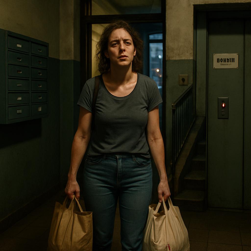 К третьему этажу ноги стали тяжёлыми, словно налились свинцом. Пакеты казались втрое тяжелее, чем внизу. Несмотря на прохладу, на лбу выступил пот. Она остановилась на площадке, прислонилась к стене и на секунду прикрыла глаза.