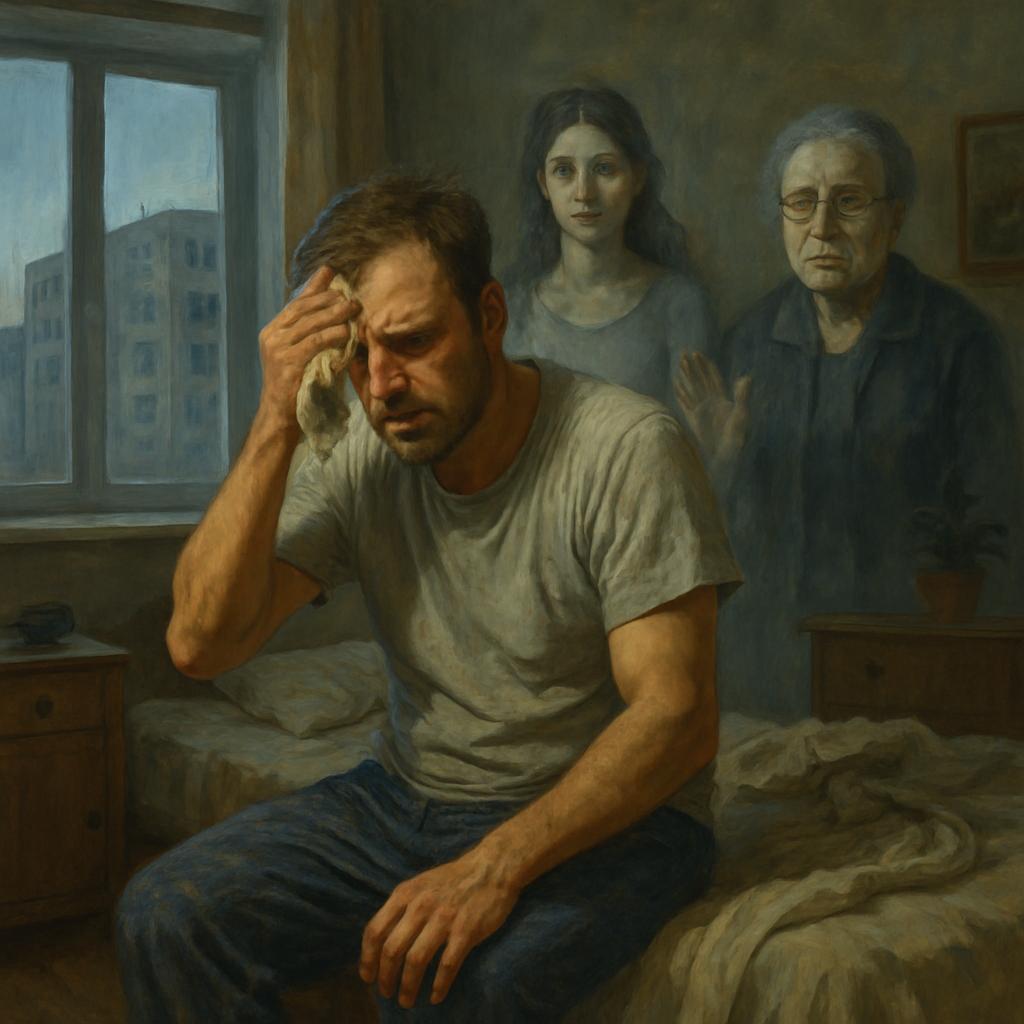 Во сне к нему являлись покойные Вера, жена и тёща. Все трое стояли в белых рубахах и тянули к нему руки.