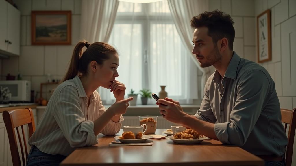 Я медленно опустила телефон на стол и перевела взгляд на мужа. Андрей, который до этого спокойно жевал бутерброд, застыл с таким выражением лица, будто у него внезапно отключили питание.