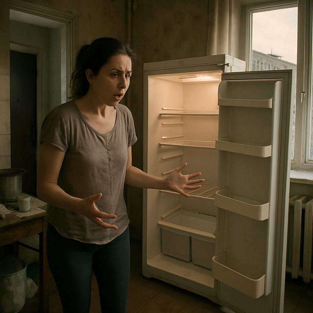 Мясо исчезло снова. Три килограмма. На тысячу двести гривен. Вчера вечером проверяла — лежало на второй полке. Утром распахнула холодильник — пустота.