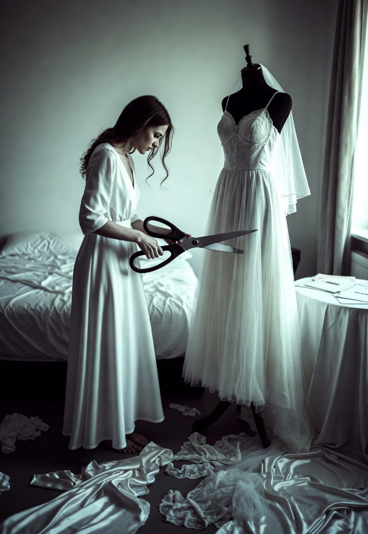 Мы с мамой выбирали его три месяца, она плакала в примерочной, говоря, какая я красивая… Я взяла большие портновские ножницы.
