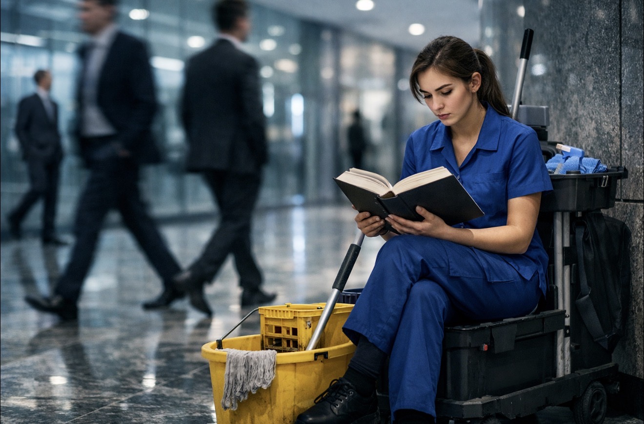 В деловом центре Стефания превращалась в «тень». Для менеджеров в костюмах за тысячи долларов она была просто движущимся синим халатом с тележкой. Она мыла панорамные окна, за которыми кипела жизнь, о которой она мечтала.