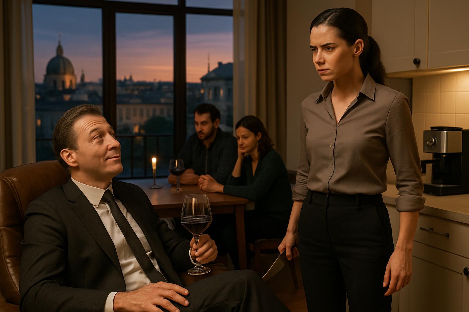 Она медленно отложила нож и вилку; лезвие тихо звякнуло о фарфор. Ни обиды, ни слез внутри уже не было — лишь холодная расчетливость. Глядя на его самодовольное лицо и пятно соуса на дорогой рубашке, которую он никогда не стирал сам, она чувствовала только усталое отвращение.