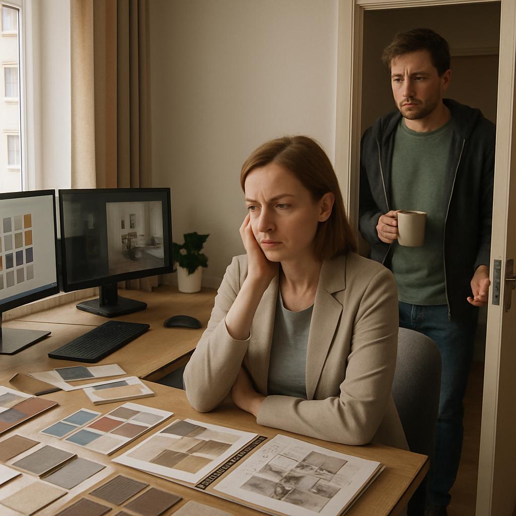 К концу второй недели Оксана проводила онлайн-встречу с новой молодой парой, планировавшей ремонт в загородном доме. Она устроилась за кухонным столом с ноутбуком — в кабинете теперь жила свекровь, а замка на двери не было. В середине обсуждения из комнаты раздался звук сериала: Людмила смотрела его на планшете, оставив дверь открытой. Клиент деликатно уточнил: «У вас что-то фоном звучит?» Оксана извинилась, встала, прикрыла дверь снаружи и вернулась к разговору. Через пять минут дверь снова распахнулась — «душно».