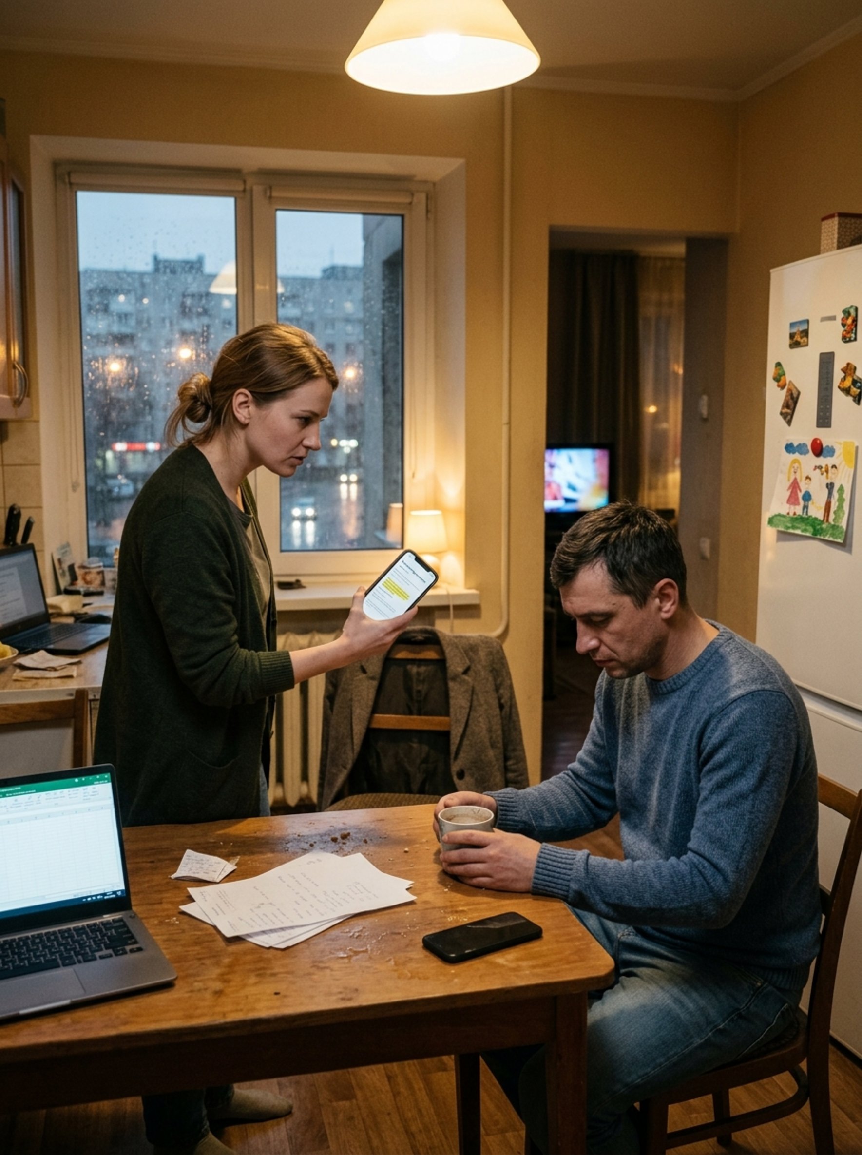 Оксана несколько секунд молча смотрела на него: на спокойные плечи, на домашнюю футболку, на руку с кружкой. Он не выглядел человеком, пойманным на лжи. И именно это насторожило её сильнее всего.