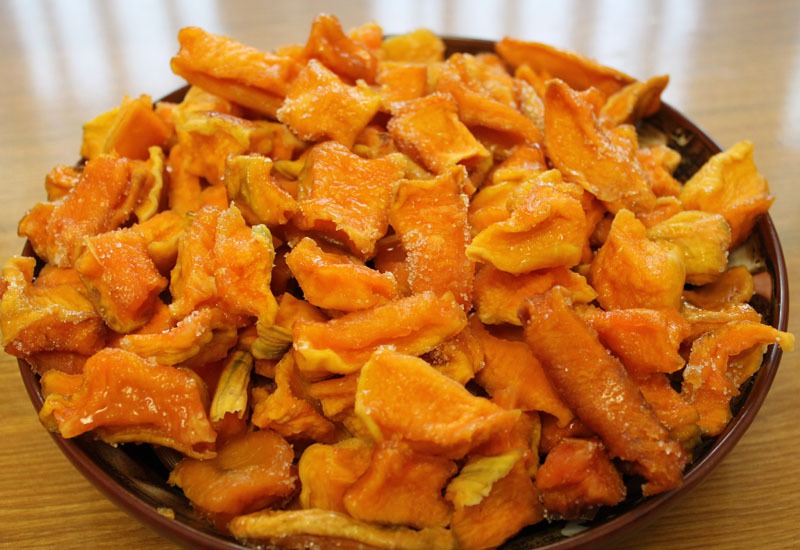 - тыкву любого десертного сорта режем кубиками 3 на 3 см;