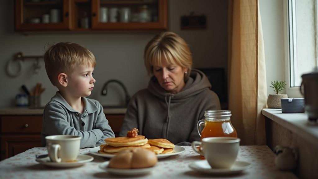 — Андрей, пойдём завтракать! — позвала сына Ольга, расставляя на стол тарелку с золотистыми блинами, вазочку с густым вареньем и чашки с горячим чаем.