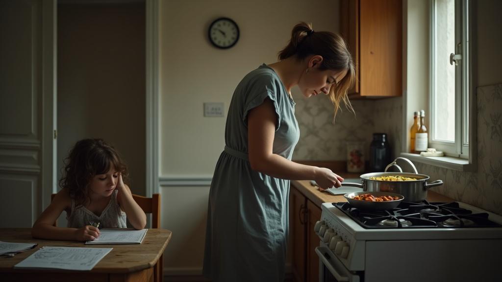 Ольга стояла у плиты, помешивая овощное рагу с индейкой. На часах было половина восьмого, а Игорь, как обычно, задерживался на работе. Дочь Аня сидела за столом, делая уроки, время от времени поглядывая на мать.