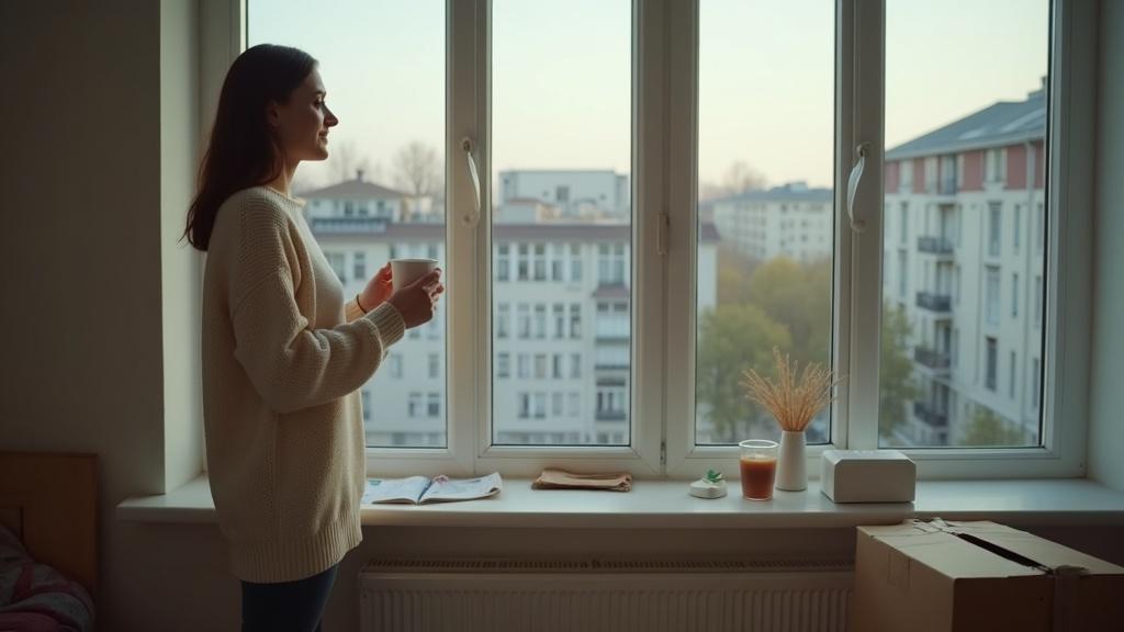 Ольга стояла у окна, крепко обхватив чашку с тёплым липовым чаем обеими руками. В квартире царила необычайная тишина. Не доносился ни звук, ни шорох — даже электрический чайник молчал, словно прислушивался к этой непривычной безмолвности. Алексей всё ещё спал — утомлённый ночной перевозкой вещей. Катя спокойно дышала в своей кроватке под одеялом с розовыми ёжиками.