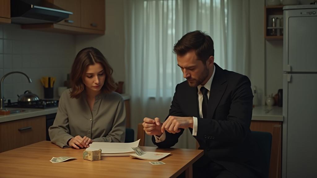 Скомканная тысячная купюра падает на кухонный стол и замирает у самой кромки, словно колеблясь, стоит ли упасть на пол.