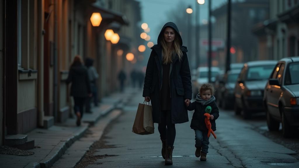 Тамара прижала трубку к плечу, поправляя сползший с головы капюшон. Вечерний ветерок вытягивал волосы из-под резинки, щекотал щеки. В одной руке — тяжёлая сумка с покупками, в другой — крошечная ладошка сына. Ваня, прижав динозавра под мышку, плёлся рядом, иногда спотыкаясь. — У кассы задержали. Там была очередь. — Голос Тамары звучал спокойно, но пальцы на ручке сумки побелели. Она с усилием сжала её крепче, чтобы не уронить на тротуар.