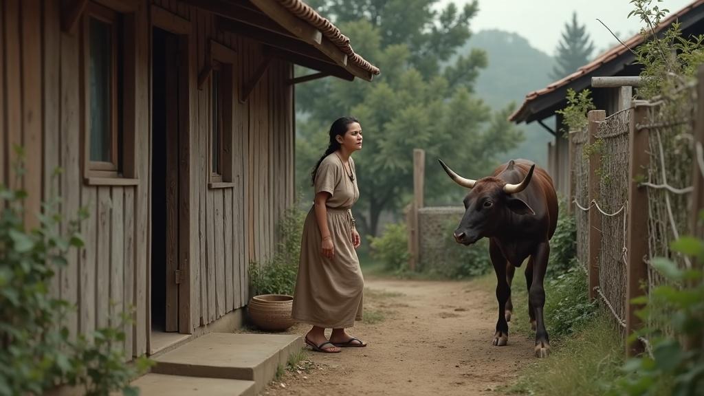 Она выбежала за калитку и увидела, как бычок рогами ломает соседский забор.