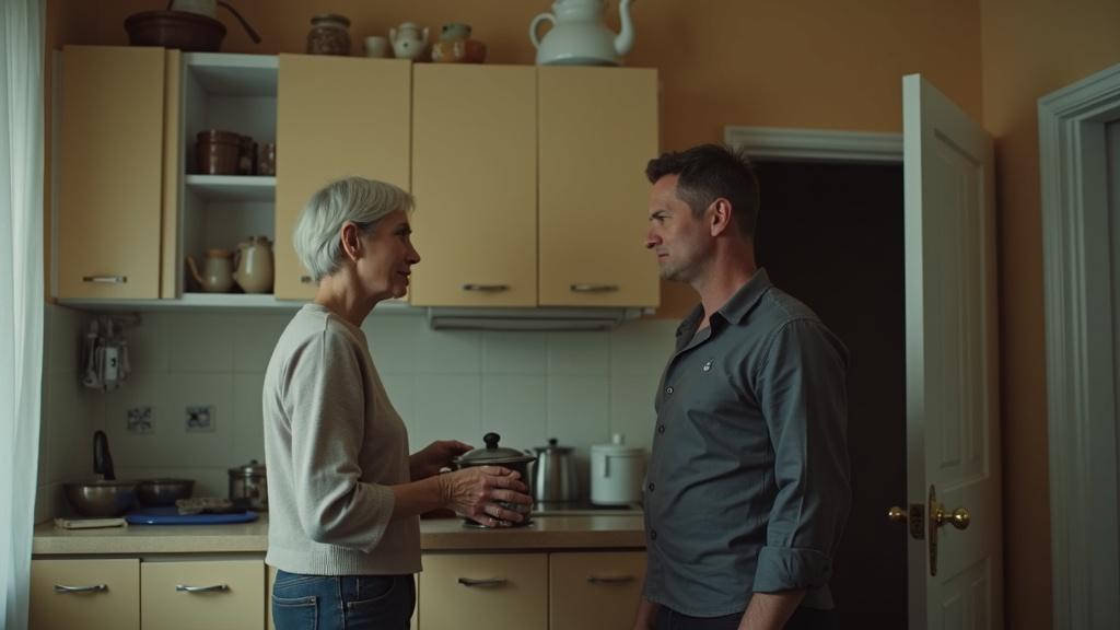 Один из таких моментов случился, когда Алексей, зайдя на кухню, застал Тамару Ивановну за тем, как она пересыпала его любимый чай в другую банку, аккуратно расставляя на полке «правильные» ёмкости с чаем. Он молча наблюдал за этим действием. Она улыбнулась и сказала: «Я же знаю, что это не то, что тебе нужно, Алексей. Всё для твоего удобства». Он не ответил. Он уже был близок к тому, чтобы сказать что-то резкое, но сдержался. В глубине души он понимал, что не сможет одержать верх.