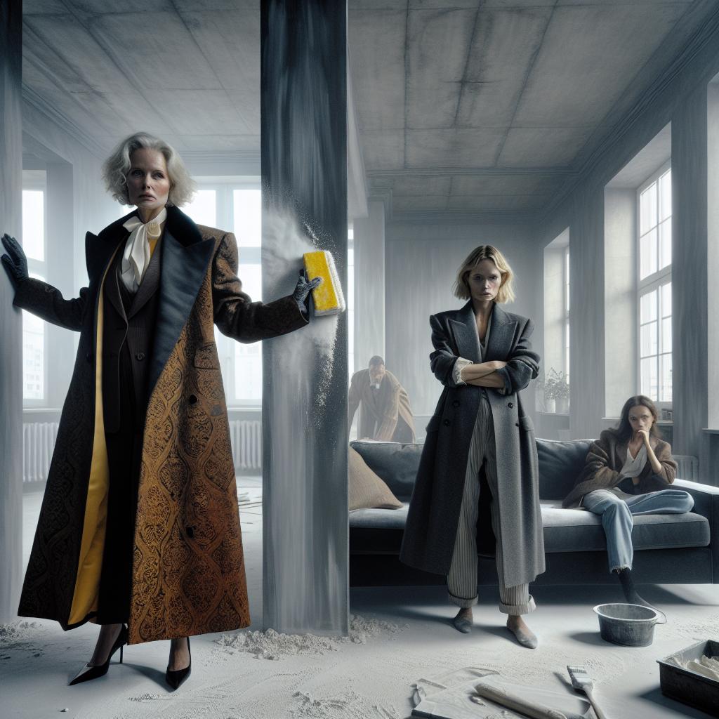 Она находилась в центре пустой гостиной, где её внушительный силуэт в дорогом пальто выглядел единственным живым элементом в этом царстве бетона и строительной пыли. В воздухе висели резкие, густые запахи грунтовки и свежей шпатлёвки, а каждый звук отдавался гулким, неприятным эхом. Её голос, привыкший отдавать приказы, наполнял всё пространство, не оставляя места для возражений. Она даже не взглянула на Наташу, её взгляд был устремлён на фронт работ, который она уже мысленно составила.