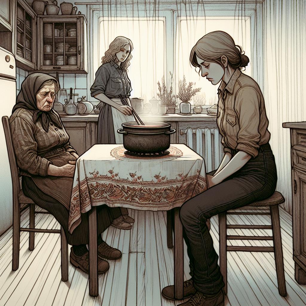 Наталья Викторовна, моя свекровь, сидела за столом, уставившись в узор клеенки.