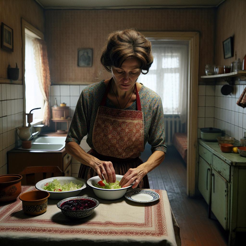 На кухне Тамара в очередной раз поправила скатерть, слегка сдвинув салатницу с винегретом, хотя она и так стояла аккуратно рядом с сырной нарезкой.