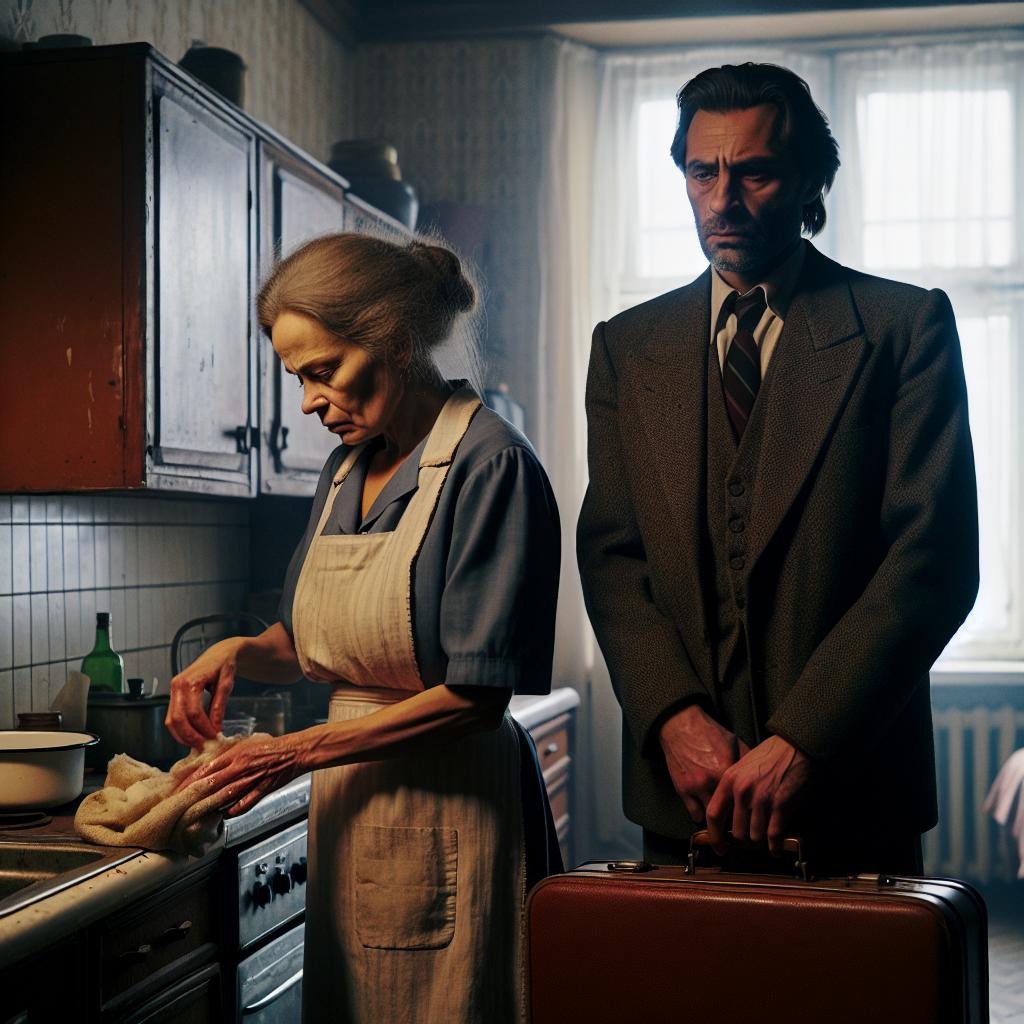 Дмитрий стоял в дверях их небольшой двухкомнатной хрущевки, одетый в новый костюм, а у ног лежал чемодан.