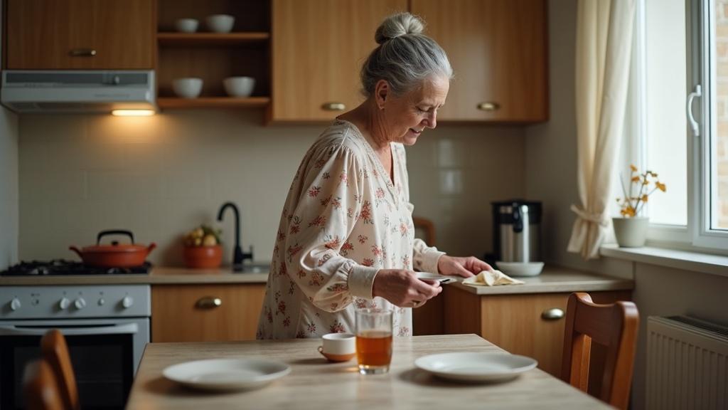 Тамара Сергеевна, женщина около шестидесяти лет с мягко поседевшими волосами, собранными в аккуратный пучок, перемещалась по кухне с привычной неспешностью.