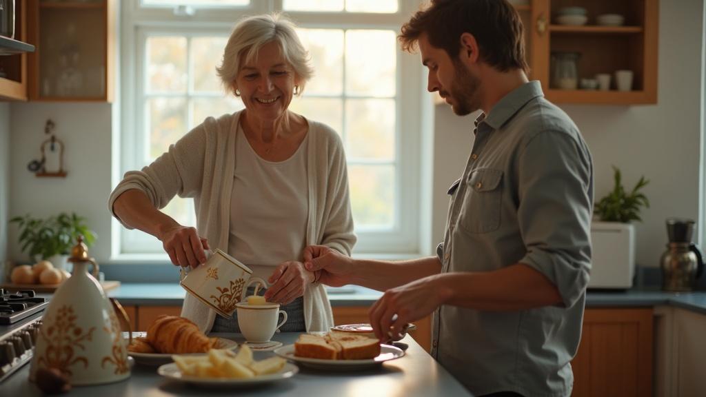 Тамара стояла у плиты, аккуратно разливая свежесваренный кофе по белым кружкам с золотистым ободком — её любимому сервизу.