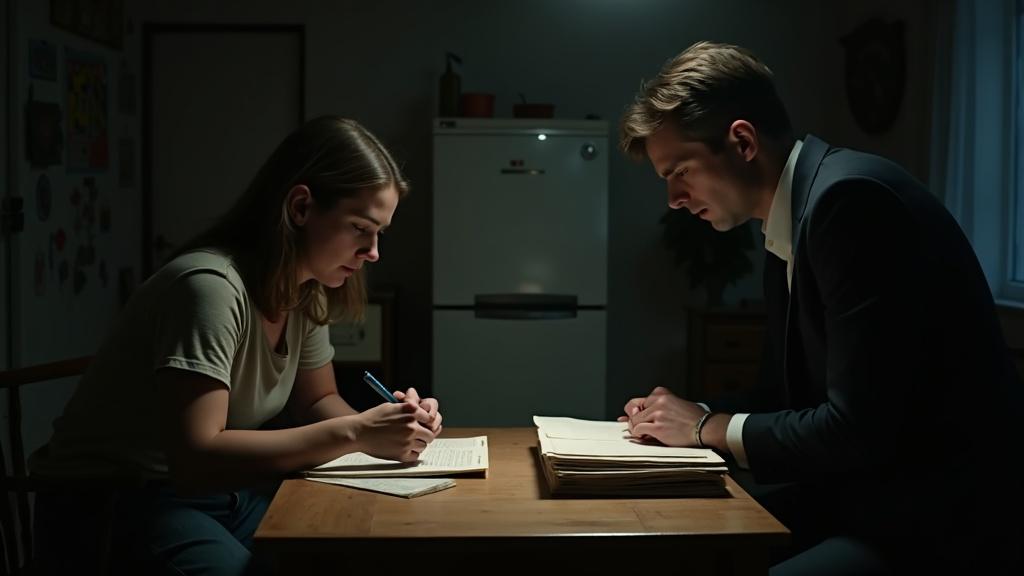 Она подняла взгляд на мужа — новый костюм сидел на нём безупречно, а от непривычного аромата парфюма слегка кружилась голова. — Здесь так много страниц, — она перебирала документы, стараясь разглядеть мелкий шрифт в тусклом свете настольной лампы. — Просто обычная перерегистрация.