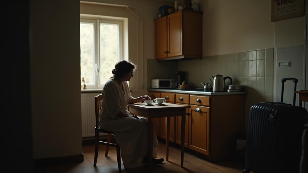 Ожидая возвращения мужа, Ганна сидела на кухне, неспешно потягивая чай с чабрецом. Услышав, как в замке повернулся ключ, она поднялась и встала в дверном проеме. Вошёл Олег — сдержанный и молчаливый.