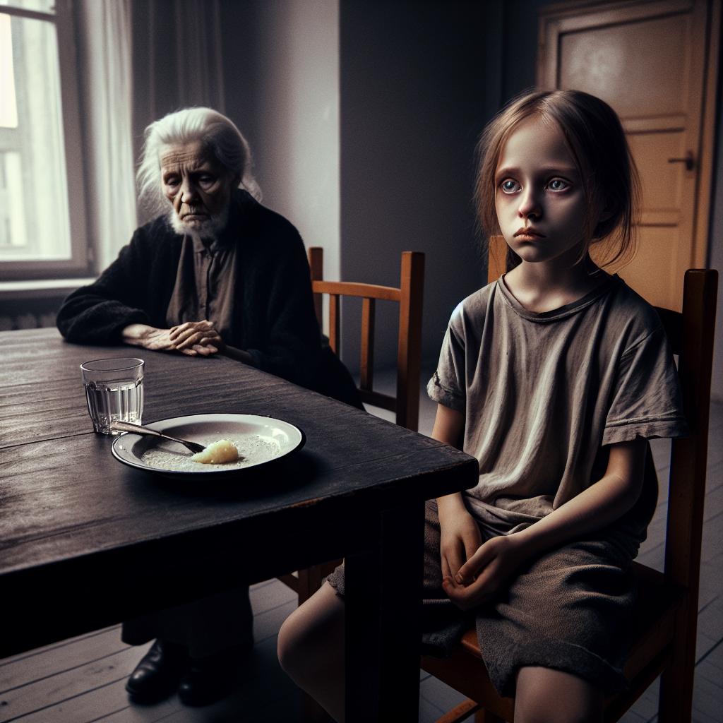 Тишина в квартире давила, словно густой туман, вязкий и удушающий. Её нарушал лишь едва слышный звук вилки, скользящей по краю почти опустевшей тарелки. За столом сидела девочка лет девяти, и взгляд её неотрывно был устремлён на тонкую полоску картофельного пюре, размазанную по дну тарелки. Это зрелище разрывала душу: всего несколько часов назад кухня наполнялась аппетитным запахом жареных котлет. Полина сама видела, как бабушка Вероника стояла у плиты. Но теперь от тех котлет не осталось ни крошки — только жалкий след на посуде.