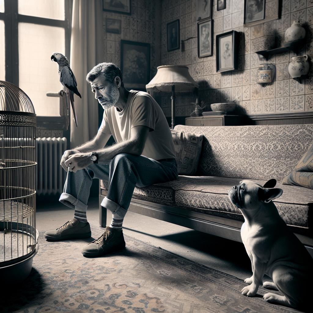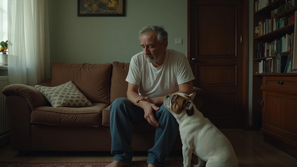 К нему тут же подбежал старенький французский бульдог Мирослав и начал лизать руки хозяину, стараясь его утешить. А кот Данило остался сидеть на столе невозмутимо. Он даже обрадовался уходу хозяйки — та часто гоняла его по пустякам.