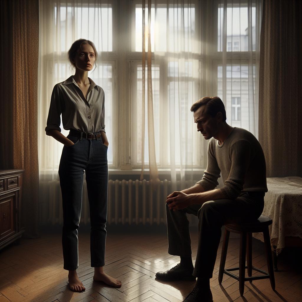 Оксана бросила взгляд на своего мужчину, сидевшего на табурете с пустым взглядом, устремлённым в окно. У неё сжалось сердце — ей хотелось поддержать его, но она не представляла, как именно это сделать. Наконец, собравшись с духом, она подошла и крепко его обняла: