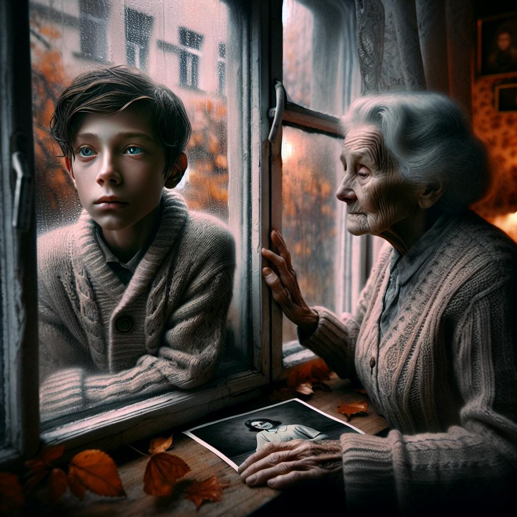Я прошёл в гостиную — там бабушка сидела в своём любимом кресле у окна… том самом месте возле которого когда-то ждал маму маленьким мальчиком… В руках у неё был старый фотоальбом; она тихо плакала над пожелтевшими страницами воспоминаний…