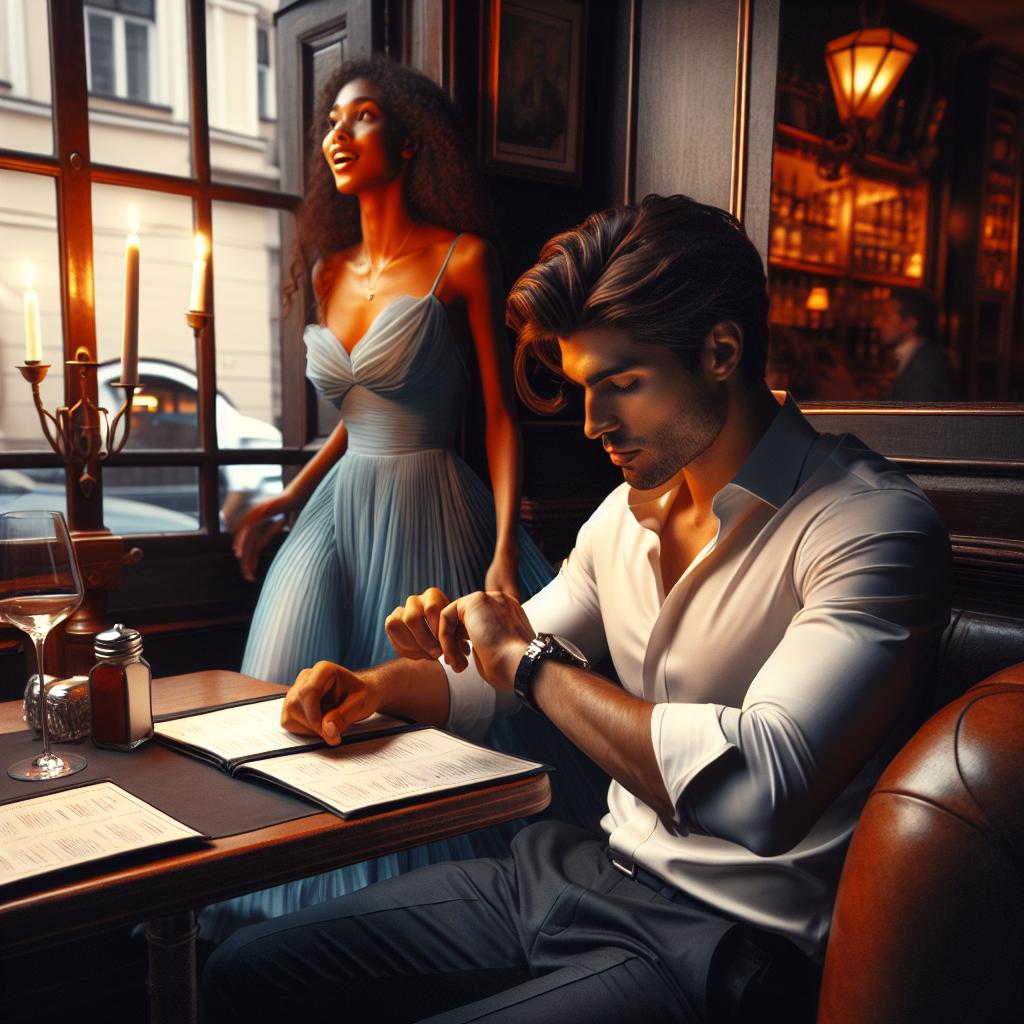 — Любимый! Прости за опоздание! — девушка стремительно подошла к столику, словно лёгкий ветерок в небесно-голубом платье, подчёркивающем её изящную фигуру.