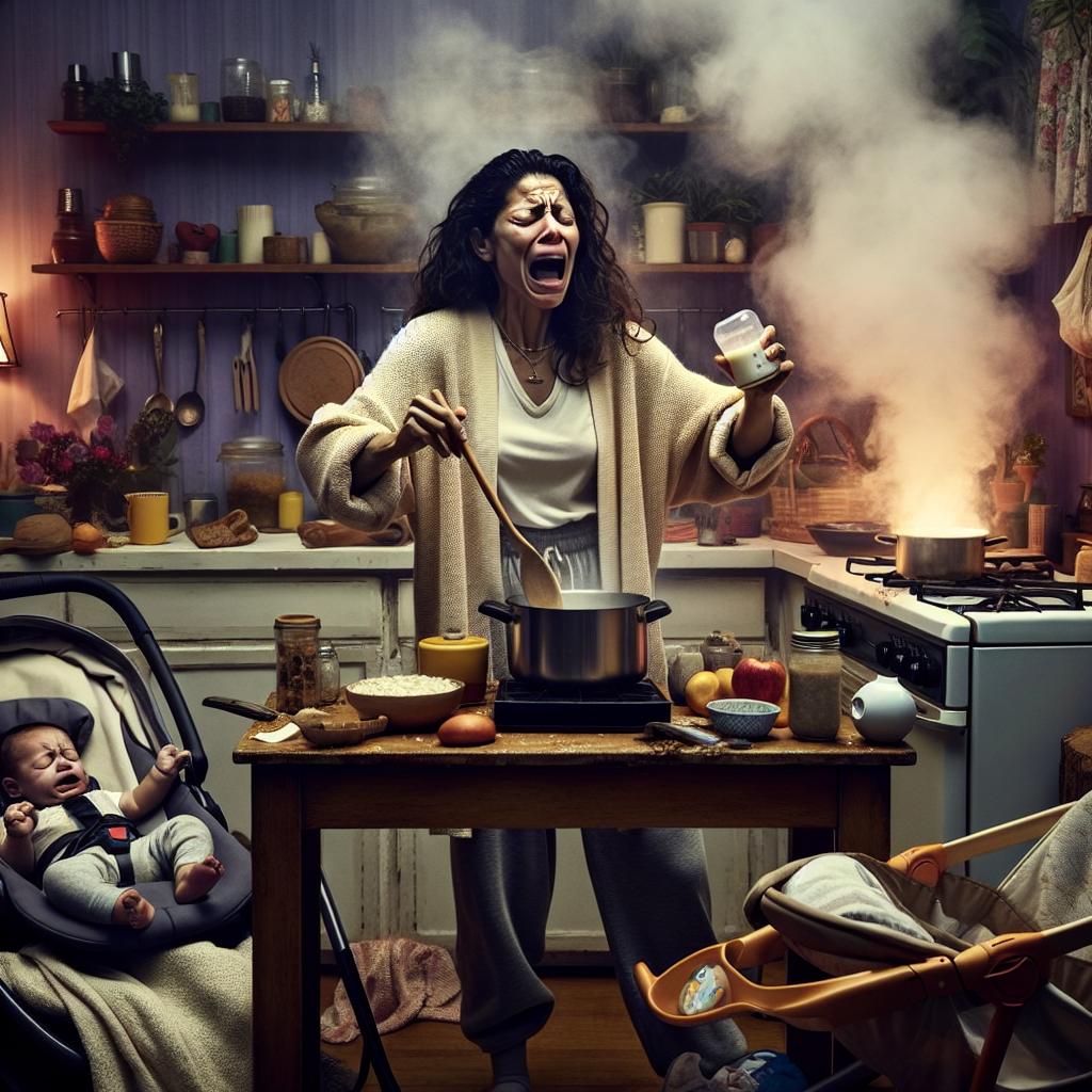 На кухне витал запах пригоревшей овсянки — она уже добрых пару минут тихо выкипала через край. Четырёхмесячный Богдан устроил в коляске целый концерт: от возмущённого писка до почти трагического вопля. Дарина одной рукой размешивала смесь, другой пыталась на ощупь найти бутылочку, а ногой ритмично покачивала коляску. Телефон был зажат между плечом и ухом.