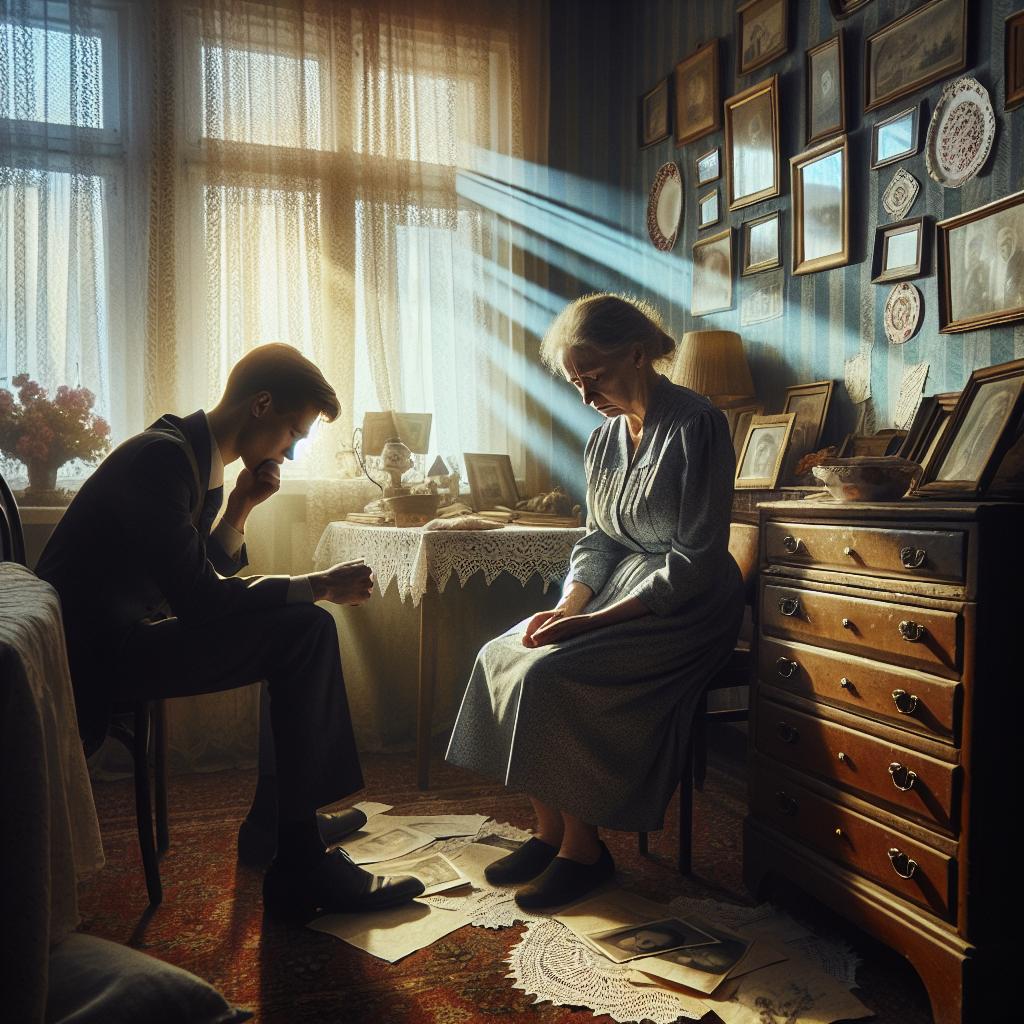 Сквозь прорехи в потускневших шторах настойчиво пробивались солнечные лучи, вырывая из полумрака пыльные фоторамки и выцветшие кружевные салфетки, аккуратно разложенные на старом комоде.