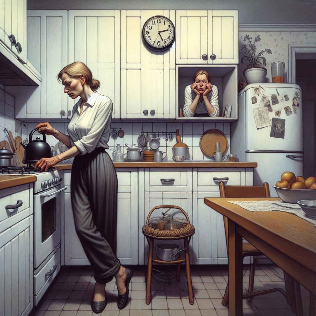 Оксана вернулась на кухню, опустилась на стул и уставилась в стену. Усталость накатывала, словно волны одна за другой.