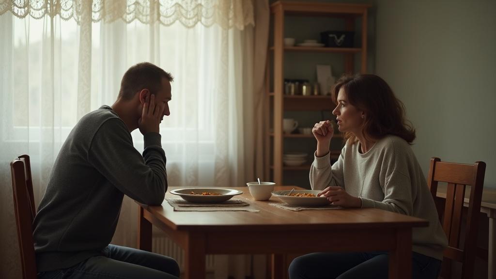 Он отодвинул тарелку с супом и усталым взглядом посмотрел на жену.