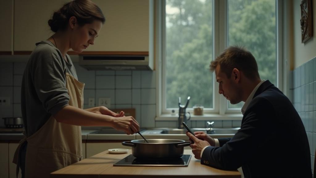 Слова Александра повисли в воздухе кухни, словно ядовитый туман. Оксана стояла у плиты, повернувшись к нему спиной, и ощущала, как внутри всё стынет. Не жжёт и не рвёт — а именно замерзает, превращаясь в ледяные осколки. Она медленно положила половник на стол. Рассольник продолжал тихо булькать в кастрюле, по кухне разносился запах укропа с чесноком. За окном моросил октябрьский дождь, а в её душе только что произошёл невидимый сдвиг — как будто что-то сдвинулось глубоко под землёй.