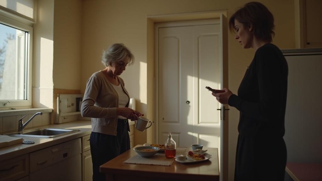 Утро. Будильник прозвенел в семь. Поднялась. Направилась на кухню.