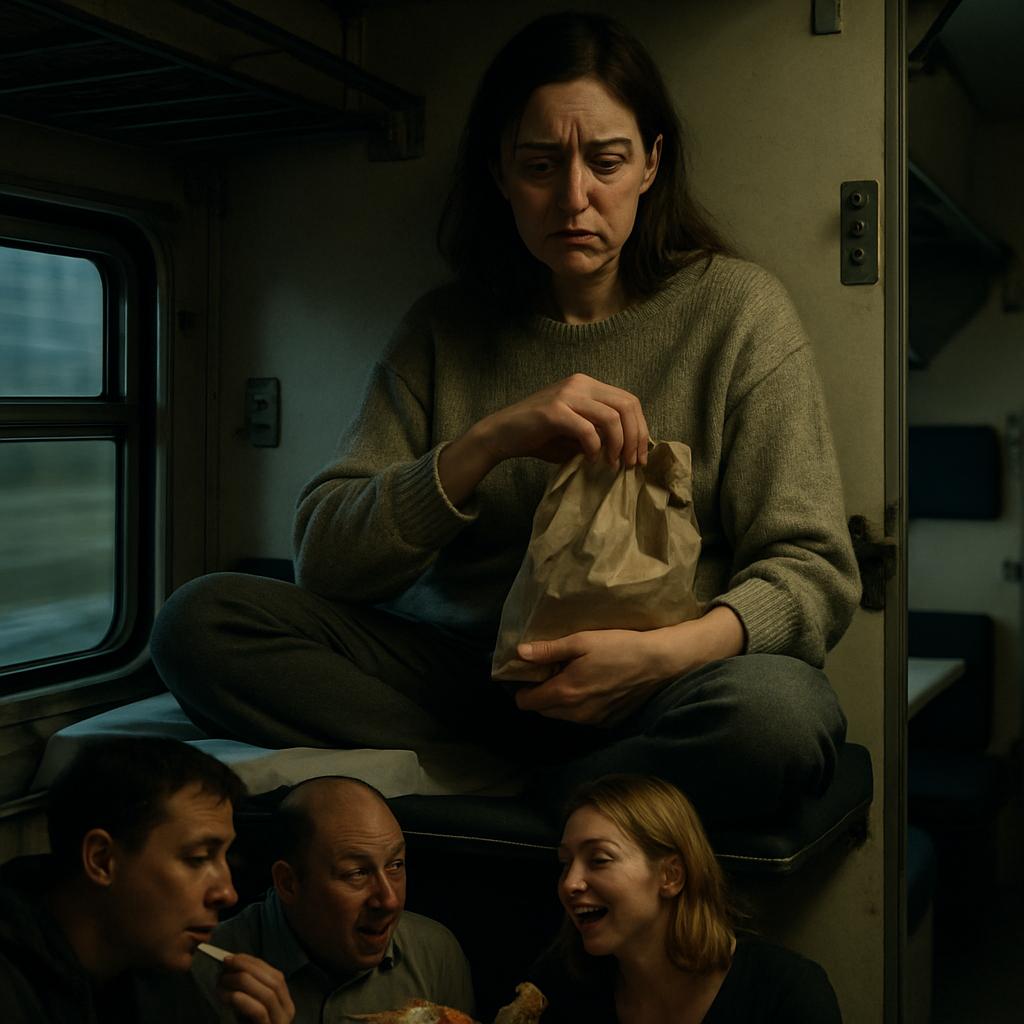 Зоряна возвращалась домой после изнурительной командировки. Три бессонные ночи, нервы на пределе. Измотанная, с тёмными кругами под глазами, она забралась на верхнюю полку и достала из пакета еду, которую с любовью собрала Маричка: пирожки с картошкой, котлеты, варёные яйца, баночку солёных огурцов и компот. Хотела перекусить, но сначала решила немного передохнуть.